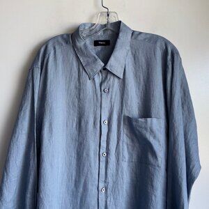 Theory Irving Shirt Mens XXL Blue Precise Linen Long Sleeve
