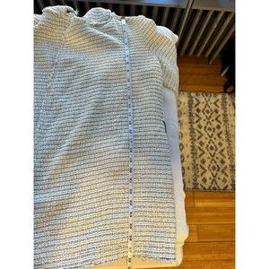 Soft, lightweight textured tweed fabrication. Knotched lapel collar. Grosgrain ribbon belt with trim detail. String belt loops. Black trim detail cuffs. Raw edges. This coat can be styled differently by tying the belt in the front or back, or not worn at all for an open front look. Size Medium Color: Ivory Multi Measures Flat Approximately: 19.5 Pit to Pit, 23 Sleeve, 34 Long 90% Cotton / 10% Polyamide Dry Clean **This coat is preowned, and shows light wear! No flaws! Excellent Condition!**