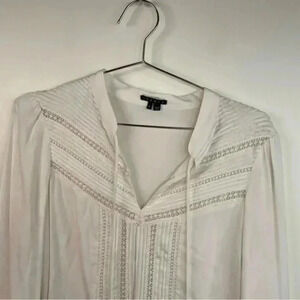 Theory Ivory Embroidered Lace Long Sleeve Peasant Top
