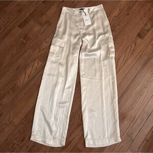Theory Ivory Satin Wide Leg Cargo Pants Size 00/XS