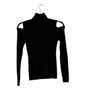 Elevate your style with this chic black sweater featuring trendy cut-out shoulders. Perfect for any occasion.