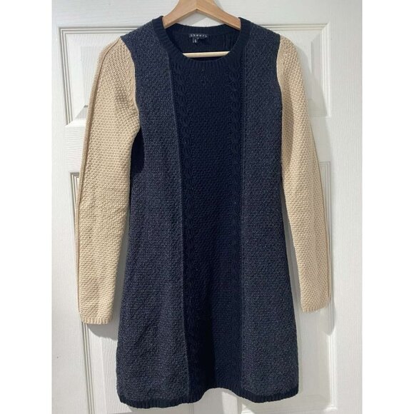 Theory Jiya Loryelle Color Block 100% Wool Sweater Dress Blue Cream Petite S