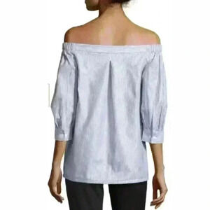 Theory Women's Joscla Blue/White striped Mason Off shoulder blouse Sz S