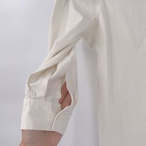 - Three-quarter length sleeves with button cuffs; slight ruching.