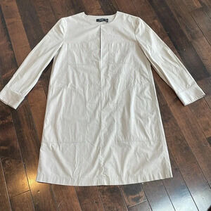 Theory Jullitah B Split-Front Poplin Tunic Dress 3/4 Sleeve Tan Neutral Size 2