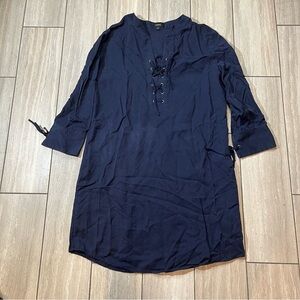 Theory Jullitah R2 Lace-up Shirt Shift Lightweight Dress Navy Womens Size 8