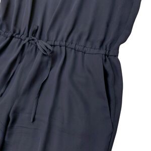 Theory Jumpsuit Womens 6 Navy Silk Sleeveless Tie Front Straight Leg Relaxed Fit