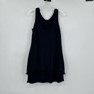 Theory Jurinzi Reverie womens dress in black. Fringe detail on layered, shift style dress. Back scoop. Sleeveless. Linen blend. Womens size P, which is a 0. Excellent used condition. No flaws detected. See measurements for proper fit.