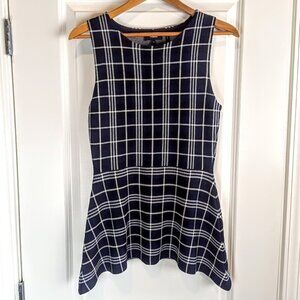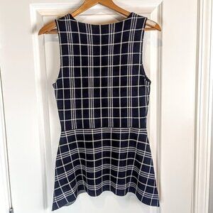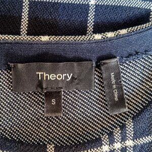 Classic plaid sleeveless top from Theory in deep navy blue, black and white.
