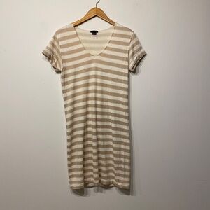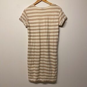 Linen v-neck dress. Short. Striped white and beige. In excellent condition. Size is P, fits like an XS or small.