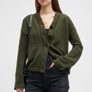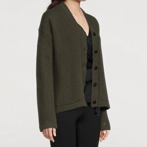 Theory Karenia Felted Wool And Cashmere Cardigan in Olive Green Size Small