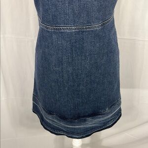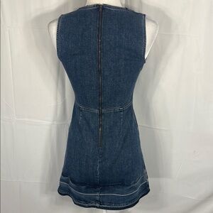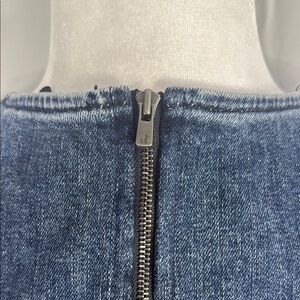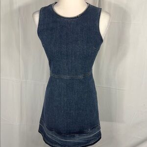 Theory Karissa dress, Theory denim mini, sleeveless denim dress, exposed zipper dress, Theory size 0 dress, Theory USA made dress, indigo denim mini dress, Theory casual dress, fitted jean dress.