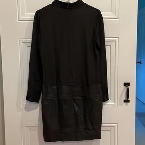 Gorgeous silk and leather Theory shift dress (sz 4). It’s a showstopper and so elegant. Pair with knee high boots or make it casual with sneakers.