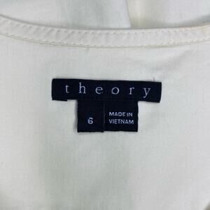Theory Ketan A Line Dress in a pale creamy yellow color size 6. Structured, tailored style. Has chest patch pockets hidden button-front closure, elastic stretchy cinched-in waistline and hidden side pockets. Unlined. No flaws of any kind, it’s in excellent preowned condition.