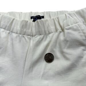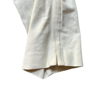 These Theory Kleon B pants are in excellent preloved condition with a soft off-white tone and a comfortable stretchy waist. Overall condition is 8.5/10 with a small mark on the front near where the coin is shown in photos. Clean, modern, and versatile for work or casual wear. Color may vary slightly due to studio lighting.