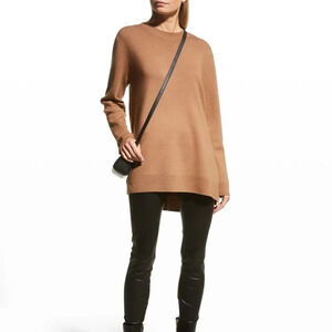 A crewneck sweater with long sleeves, this relaxed style is finished with a split, high-low hem. It’s crafted with fine-gauge Merino wool knit with stretch and pairs effortlessly with the matching flare pant.