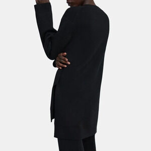 Theory Knit Tunic Empire Fine Merino Wool Tunic Sweater Black Size Large