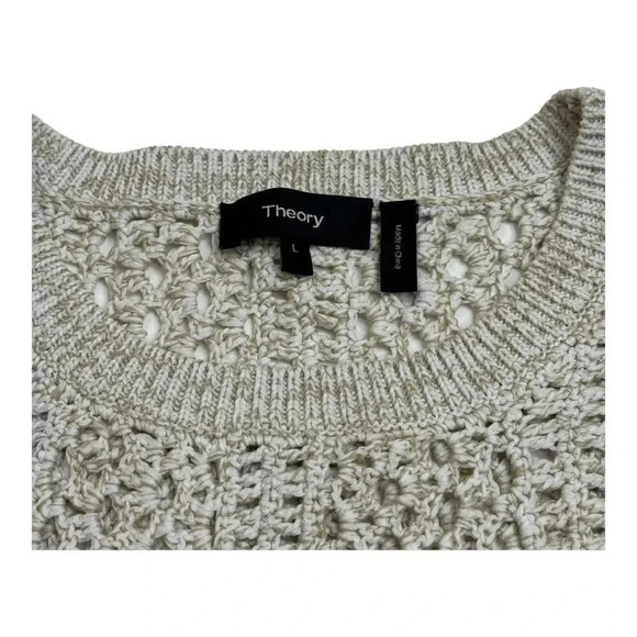 Theory Krezia B Iras Crochet Knit Cropped Pullover Iras sheer crocheted knit pullover sweater. Round neckline. Long sleeves. Boxy, cropped silhouette.