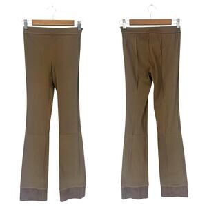 These are authentic Theory Slim Kick Pants crafted from ultra-smooth 100% lamb leather in a sleek, sculpted silhouette. This high-rise style features a side zip closure and tailored leg shape, flaring subtly at the hem for a modern cropped kick. The unique colorblock leather hem, custom added by a professional tailor, creates a fashion-forward finish that adds edge and individuality to the classic minimalist cut. Designed to elevate any wardrobe with rich texture and impeccable craftsmanship, these leather pants are ideal for pairing with blazers, knits, or structured blouses for sharp transitional style.