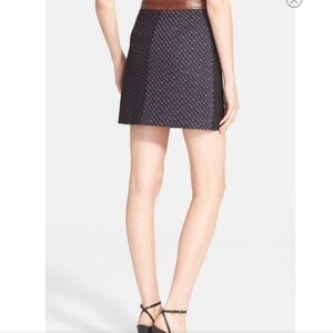 Theory Lanitta Heightened Tweed Leather Trim A-Line Skirt Sz 8