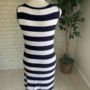 Theory Lasina Striped Navy Blue and White Sheath Dress Size Small