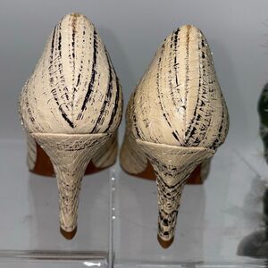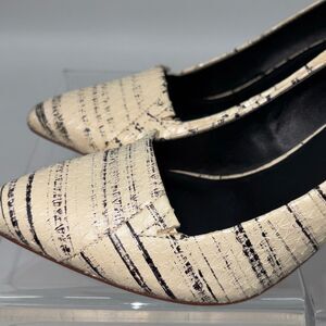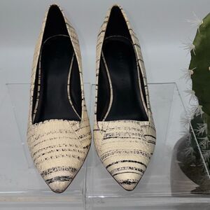Theory Leather City Pump Pointed Toe Kitten Heel Cream Black 37/6.5