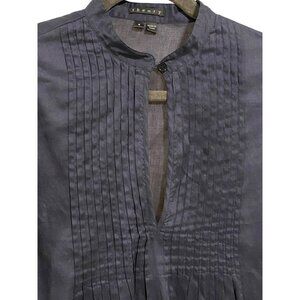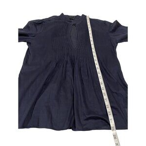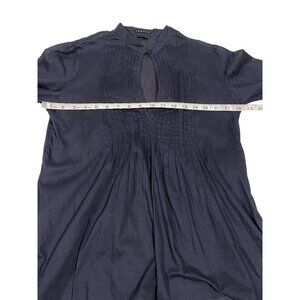 Theory Lexus Cinz Navy Blue Women's Semi Sheer Pintuck Keyhole Blouse Size S