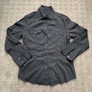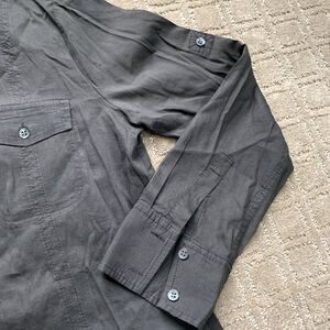 Theory Linen Blend Collared Button Up & Wide Leg Pants Set Y2K
