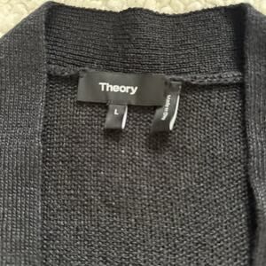 Theory Linen Blend Duster Cardigan Sweater Black Large Longlined Slim Silhouette