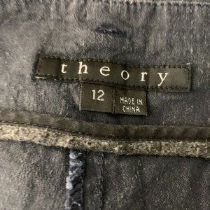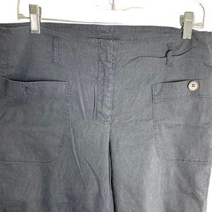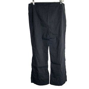 Theory Linen Blend Mid Rise Flare Pants 12 Black Front Pockets Zip Belt Loops