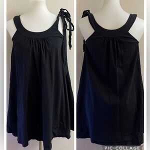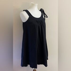 Theory Linen Blend Mini Babydoll Dress Black Party Minimalist Holiday Layering