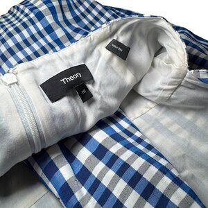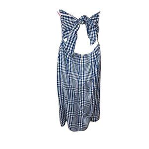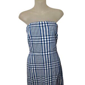 Theory Linen Blend Phyly Strapless Tie-Back Midi Dress Blue Plaid size 10 NWOT