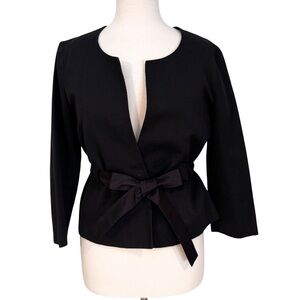 Theory Linen Cotton Blend Blazer Jacket with Ribbon Tie Black Size 8