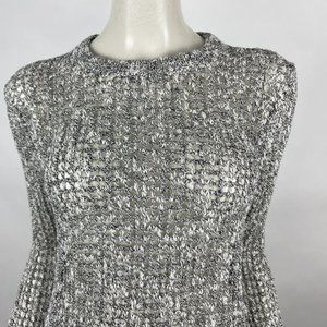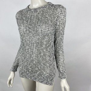 Theory Linen Cotton Mesh Knit Sweater Women M Long Sleeve Pullover Crew Neck