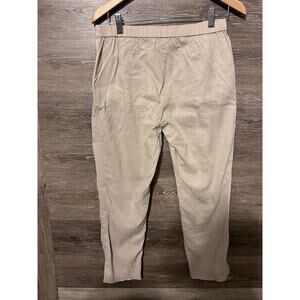 Theory Linen Pants Stretch Ivory Cream Cropped Sz 6 Preppy Pockets