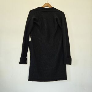 Theory Long Knit Cardigan Womens S Black Wool Blend Pockets Neutral Quiet Luxury