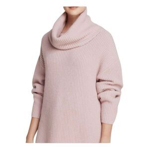 Theory Loryelle Oversized Turtleneck Sweater in Naven Dust Pink Soft Knit. It has Long Sleeves, Side Vents, Rolled Loose Cowl Neck and is a Drop Shoulder Oversized Pull-Over Style. It's Super Soft and is great for casual days at work, school, date night, night out with the girls, and Family Dinner.