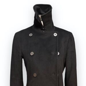 Theory Luxury Black Wool Angora Cashmere Double Breasted Coat S USA Early Y2K