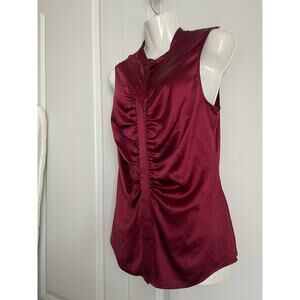 Theory Luxury Satin Ruched Fitted Sleeveless Button Down Top - Large