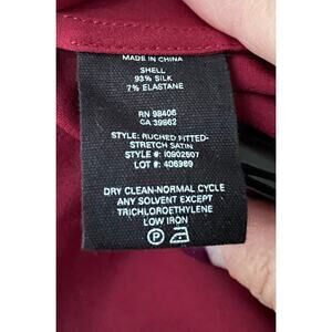 This beautiful Deep Mulberry Theory Satin Ruched Fitted Button Down Sleeveless Blouse w/Stretch Breathable Luxury Fabric. This is a perfect top and on trend with it being very versatile for any occasion. Partially concealed button placket panel, with curved hem and ruched front to add elegance ( and a bit of fit forgiveness ).