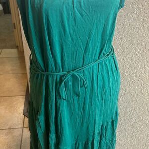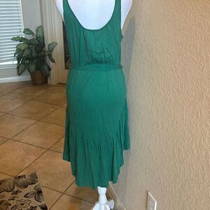 Theory M Sleeveless Tie Waist Peplum Hem Dress Green Knee Length Elevated Basic
