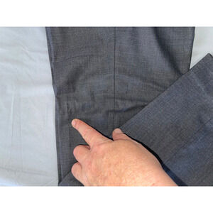 This sharp looking pair of dress pants by Theory comes in a classic and versatile gray. They are flawed: there is a small hole in the area of the left outseam (see pic with me pointing). This should be a super easy fix, and is honestly hard to spot even as is and when being specifically looked for. The pants are otherwise in excellent pre-owned condition with no other noted defects. They still look great and appear to have a ton of life left in them. We encourage you to use the zoom feature on our photos and we think you'll agree that this is a beautiful pair of pants that will make an excellent addition to your wardrobe! Please let us know if there is an angle or feature not represented that you would like to see prior to purchasing. Thanks for looking!