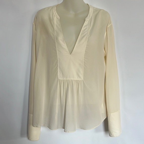 Theory Matara Pebbled Chiffon Silk Top Blouse Wide Sleeve Size M