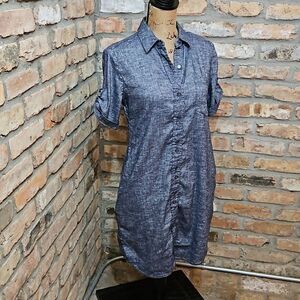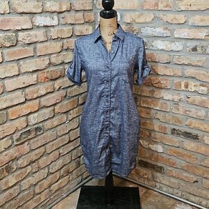 Theory Mayvine Tierra Wash Linen blend deep denim chambray style front button closure, short sleeve dress, side pockets, size 4. Excellent pre loved condition, measurements in pics, smoke free home, ships next day. Bundle and Save!