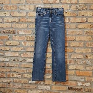 Theory Medium wash boot cut jeans, whiskered, average rise, 5 pocket style jeans, size 3. Excellent pre loved condition, measurements in pics, smoke free home. Bundle and Save!