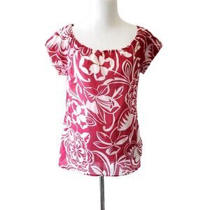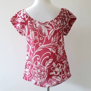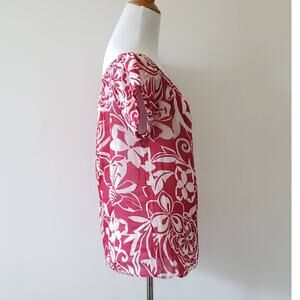 Theory Melka Blouse Hibiscus Tropical Pink Cotton Medium