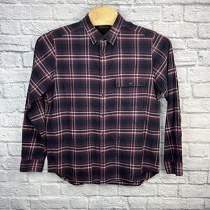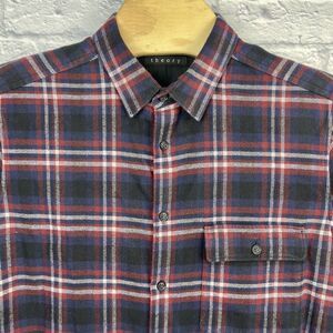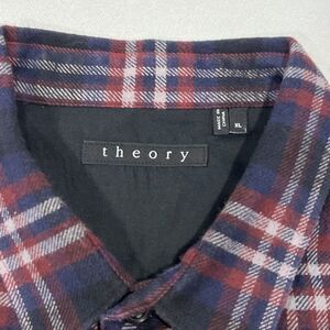 Theory Men Multicolor Long Sleeve Plaid Button Up Flannel Pocket Size XL