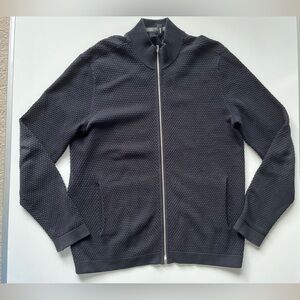 Stylish zip-up sweater by Theory. Features a textured design. Perfect for layering.