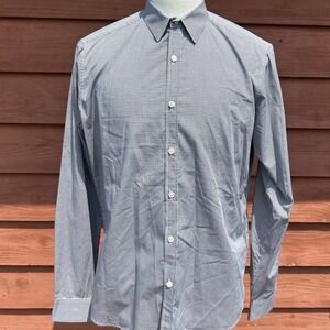 Theory Men's Dress Shirt Size L Gray Mini Check Long Sleeve Slim Fit Button Down