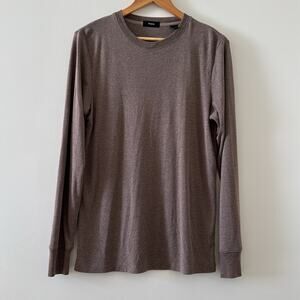Theory Men’s Essential Long-Sleeve Tee in Tapir Taupe Brown Size Small